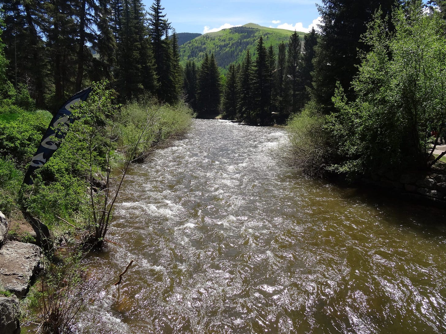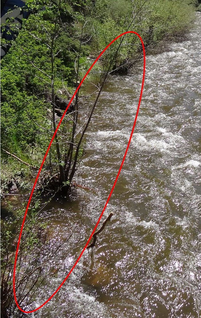 Look at this section along a Colorado stream in runoff. That’s where those fish will hang. Once you get a fly in there you’ll realize that your problem actually will be how slow the water actually is.