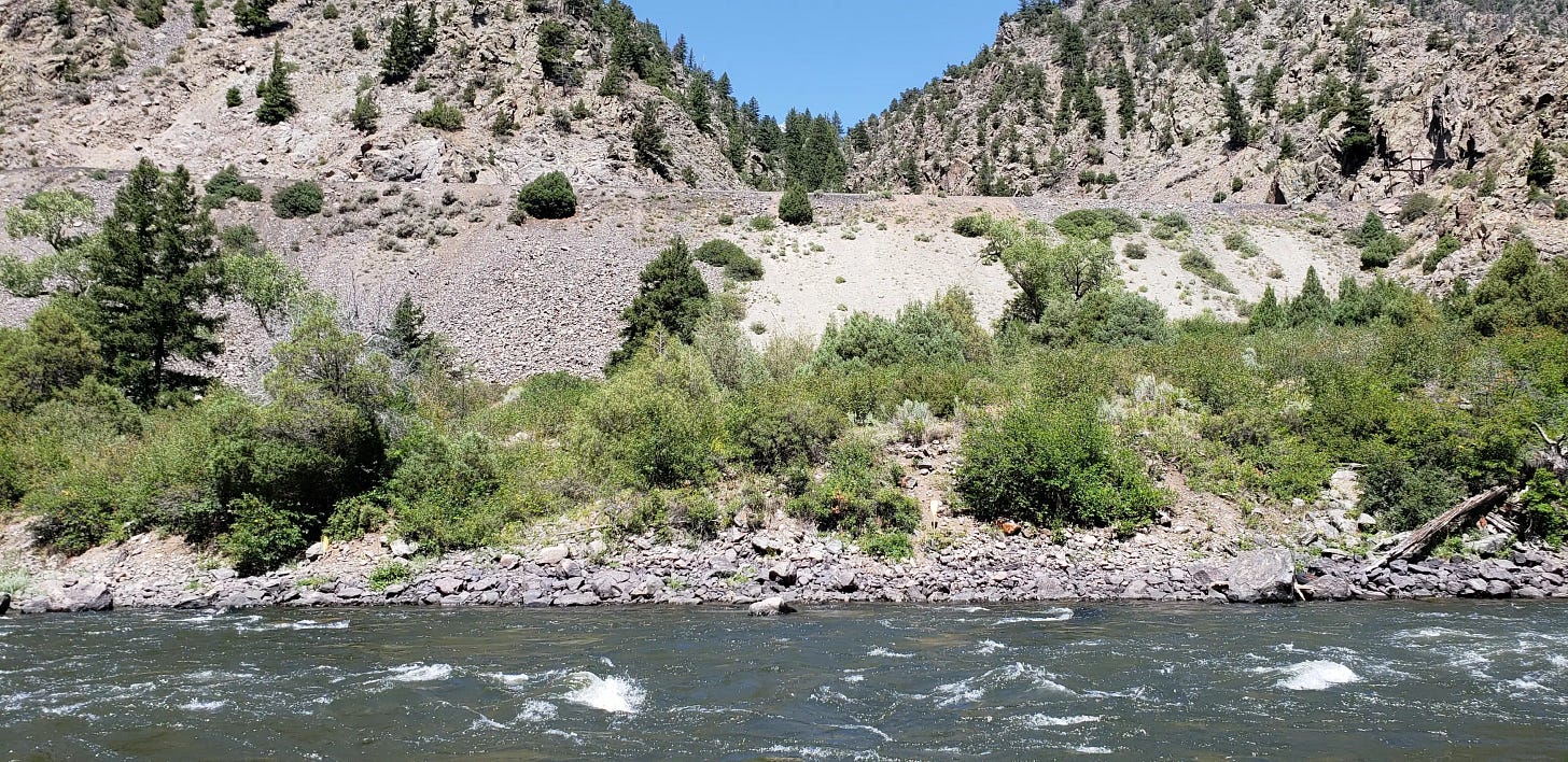 Big rivers, high waters all seem to conjure up images of trout wandering the depths. And I suppose a few do. But it seems most trout, even in those big rivers only occupy a small strip of water along the shore. yes some will hold in other structure, midstream and such, but if you don’t want to fight currents, and low probability spots, head to the margins - that’s where the fish are.