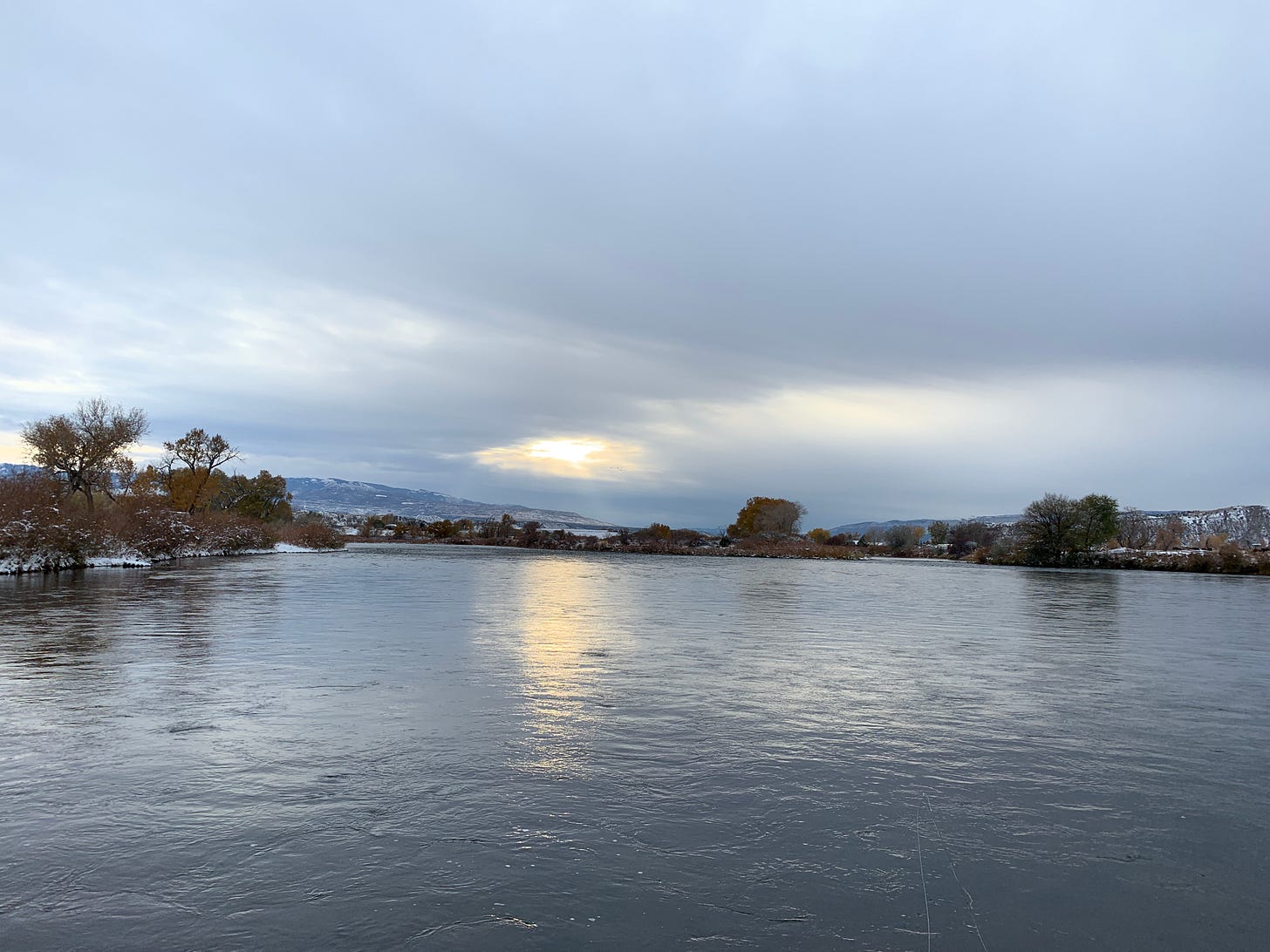 October and November Mornings in the Colorado valley always start off brisk and chilly. Up on the mountain where we live the mornings are in the 20s. The lack of moisture makes them bearable. Move down the valley from the mountains and the temperature starts going up a bit. Of course there could always be the odd snowfall.