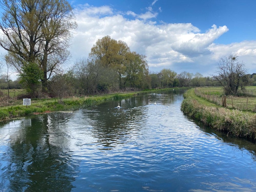 The English chalk streams, especially when they get a certain volume of water in them, are a lot deeper than their American counterparts - the spring creeks. Forty some years ago I first fished the River Test at a variety of spots around Stockbridge. What amazed me was the average depth of the river and the seeming mass of water flowing through it. Large chunks of the river seemed to flow through channelized sections that were 5-7 feet deep.