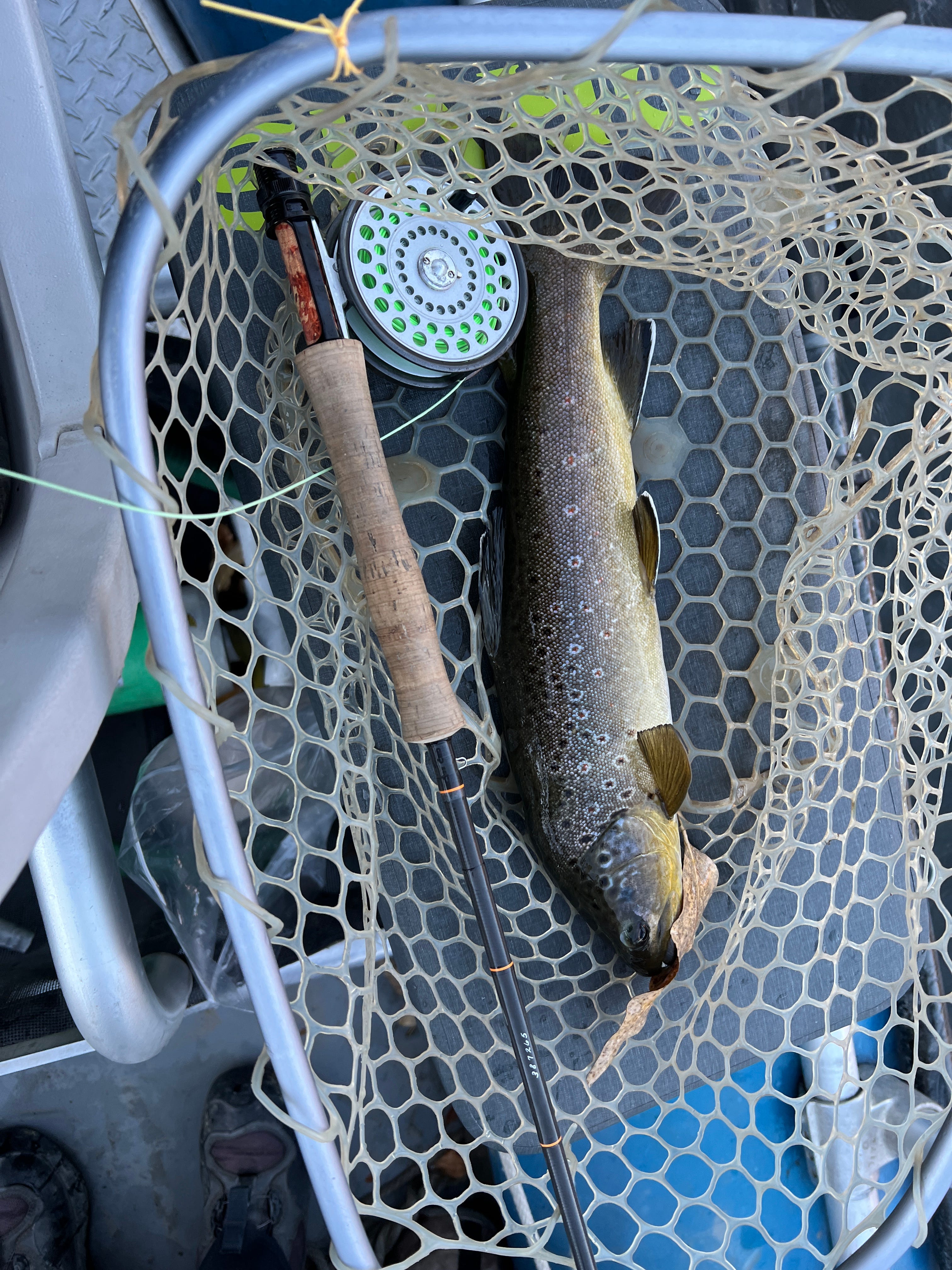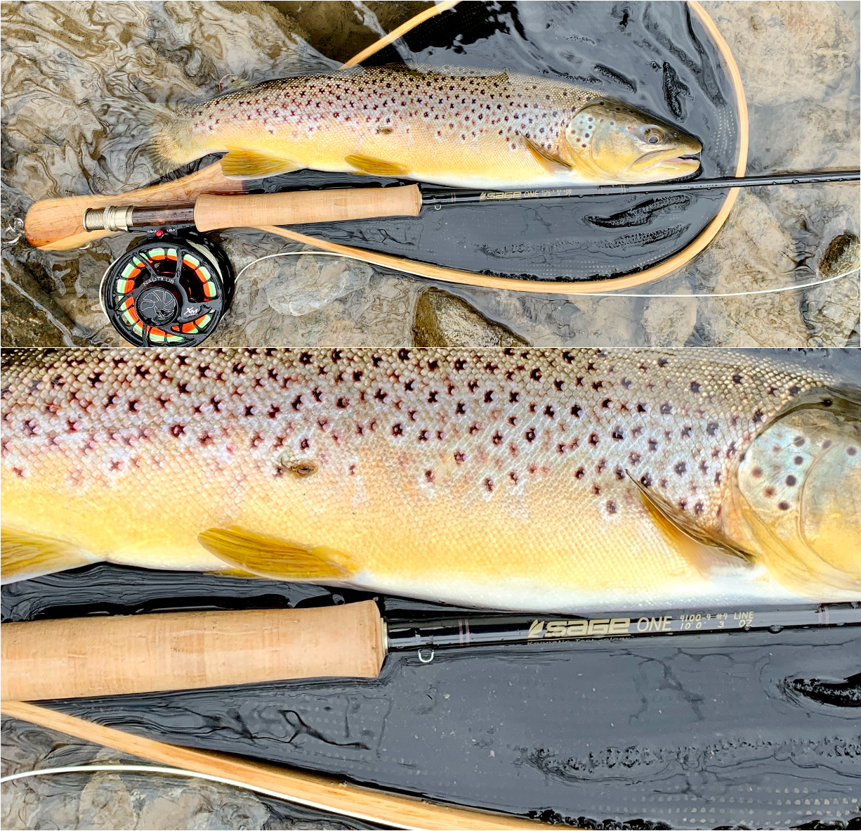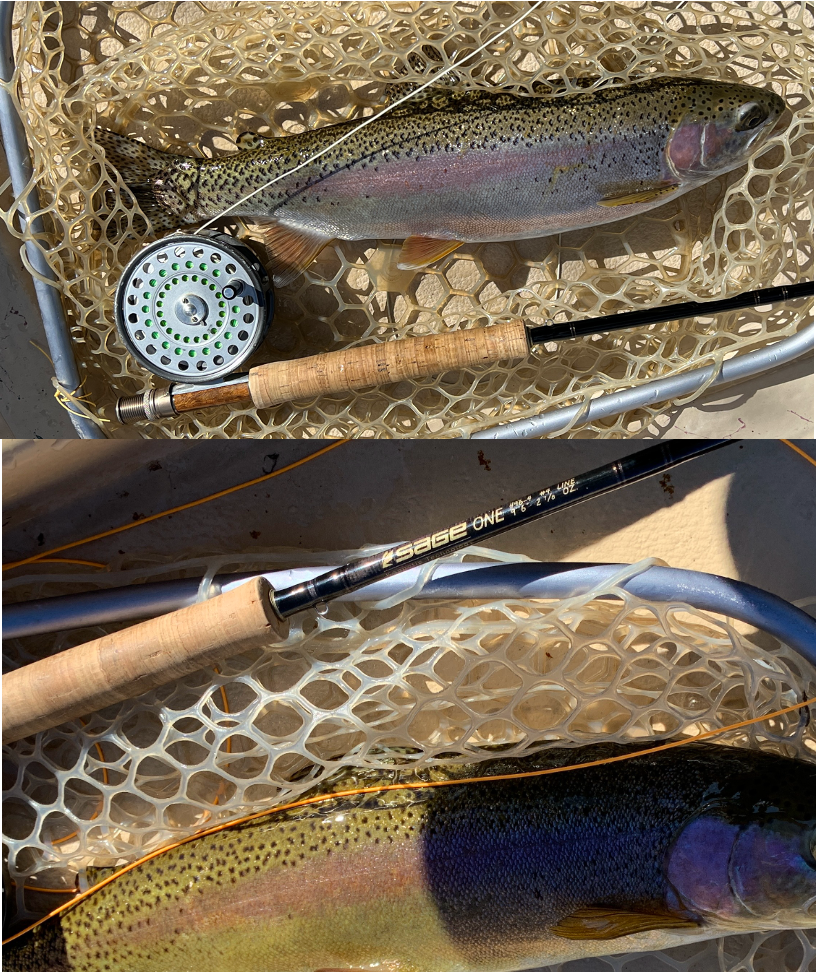 Then calamity struck. We were coming off a long fall day on the Colorado, taking out at the truck rest area at Dino. Packed everything away and the next day I realized I’d lost 3 Sage Ones. I called Sage and tried to coax them into making some for me. They politely told me to go pound sand. But this young man told me to watch out for something they had coming out in a few weeks. It was the Sonic. The best thing since the One. I sometimes suspect it is just the One wrapped in a green skin and a little lighter. But it was a great rod. Seemed like Sage had redeemed themselves from the X disaster. I have a bunch of them, and they look pretty sitting next to fish.