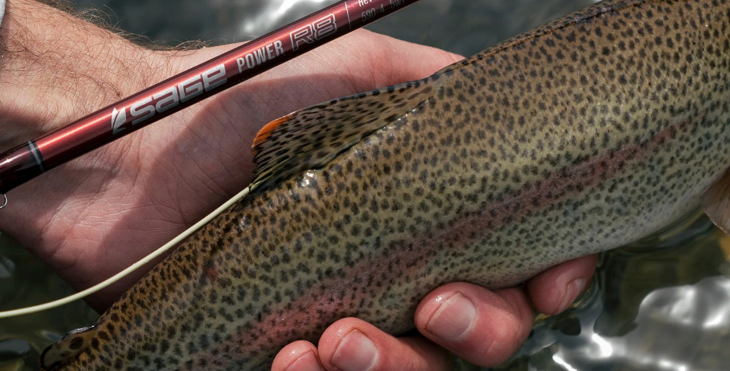 Then Sage came out with the R8. My friend Charlie Perkins who runs Mayfly Outfitters in Michigan (and it’s one fine establishment) sent me a few to try and buy. I first went to the 4100. I had visions of the X seething through my mind. I put that guy aside and tried the 5100. Now that was a nice rod. I haven’t been able to find a nice 10ft 5 wt. The Loomis NRX+ is a little clubby, the One series 5100 was a bit of a dog, the Radian 5100 was a Radian (a little bit of a gentleman in a rough crowd), the Scott Centric should not be spoken of in polite company (It’s their X). But here was a nice 5100. So that went into the rack. I’ve fished it a lot and got a second one for out west. Next I tried the 596 (too bad Sage gave up on the 496s). The best 596 I had fished until then was actually the Sonic. The R8 was a really nice rod. So that went into the rack, as did the 490. I don’t fish many 6 wts and that region is filled with a couple of Ones and Sonic and an Igniter. We’ll see what else comes down the line.