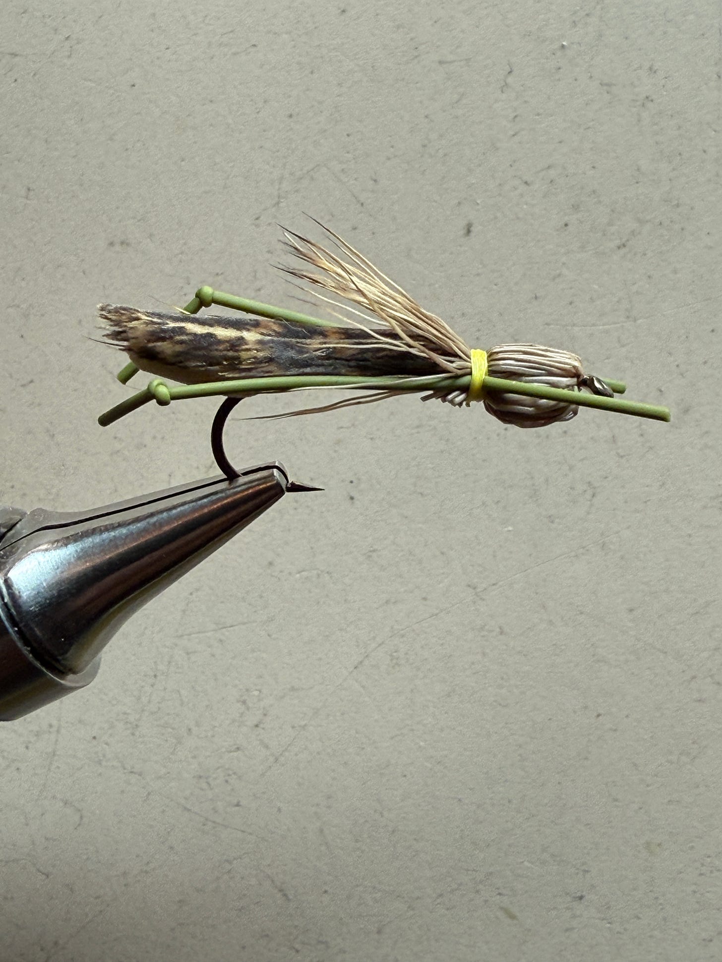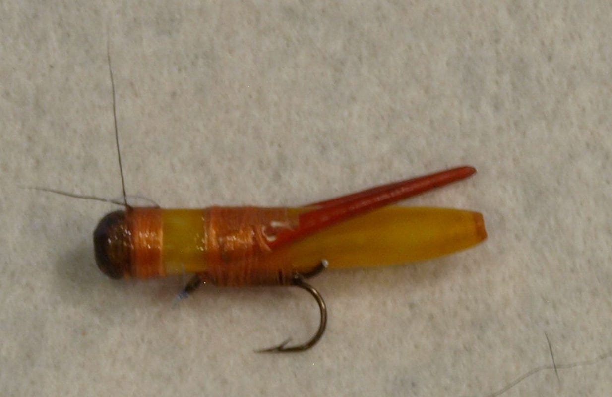 A good friend of mine swears by the Henry’s Fork Hopper, especially in slow water. I tied a few up. They look great. They are a royal pain to tie and they catch no more fish than the Letort Hopper.