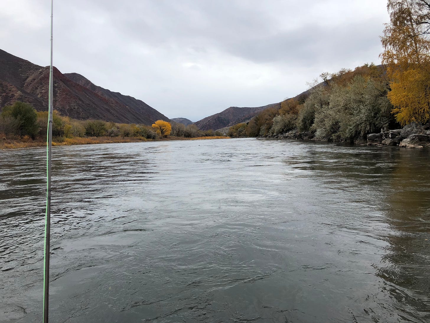 Every morning in the summer a flotilla of boats leaves the ramp. They all bump down the middle of the river, Thingamabobbers bobbing, nymphs nymphing, tourists touristing and guides doing whatever it is guides are doing. Get to the ramp after noon and there isn’t a soul around.