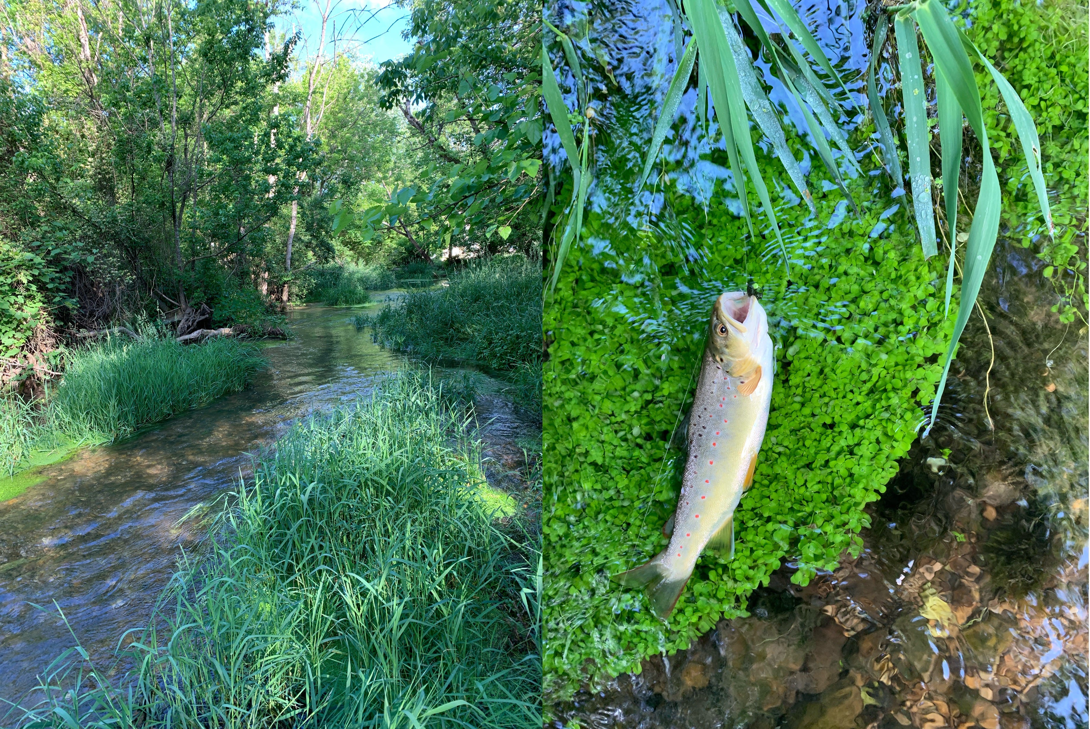 If you’re up to it rig up your rods with a beetle and an ant (yes we out here fish two dry flies on our leader), polish up your side arm casting and start plopping those flies under the trees. The trout slurp them down with relish, sometimes two at a time.