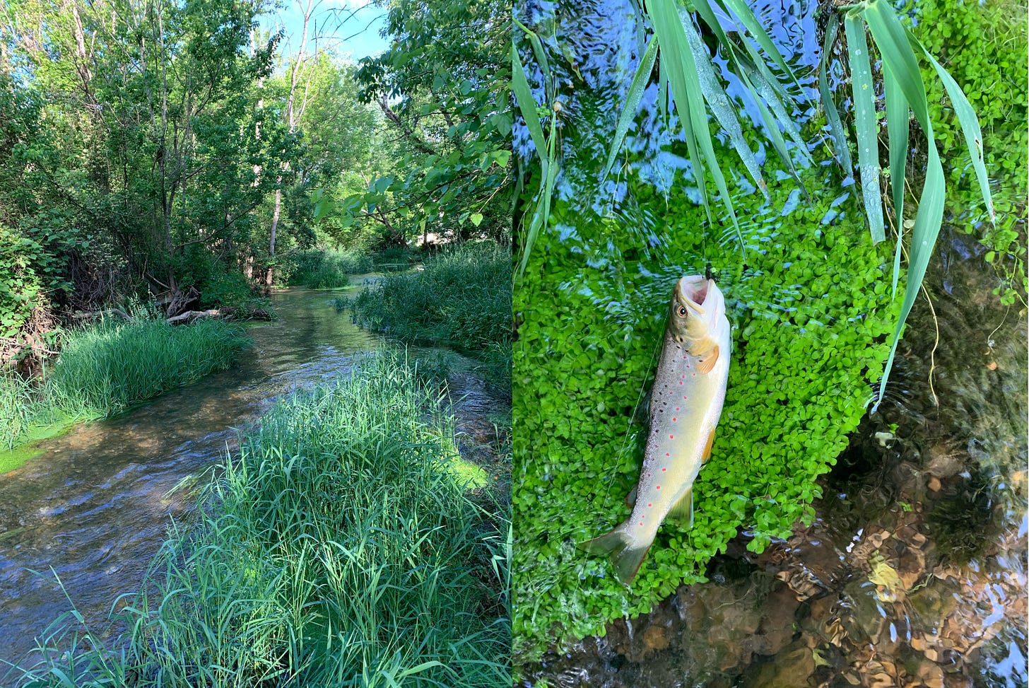 The left bank is a mass of trees that hang over the water, and there is a trough connecting numerous potholes running down that bank for almost two miles as you travel downstream.