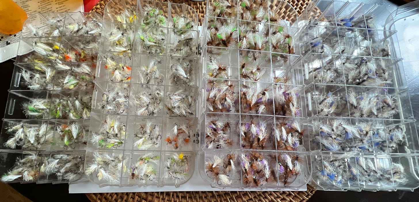 You’re meant to be carrying flies, not the boxes. These things weigh so much the weight of the flies is inconsequential, but more importantly they limit how many flies you can carry by loading you down with the weight of the plastic. The old DeWitt boxes were the opposite. They weight about 12 gms each and can carry about 9 gazzillion flies each.